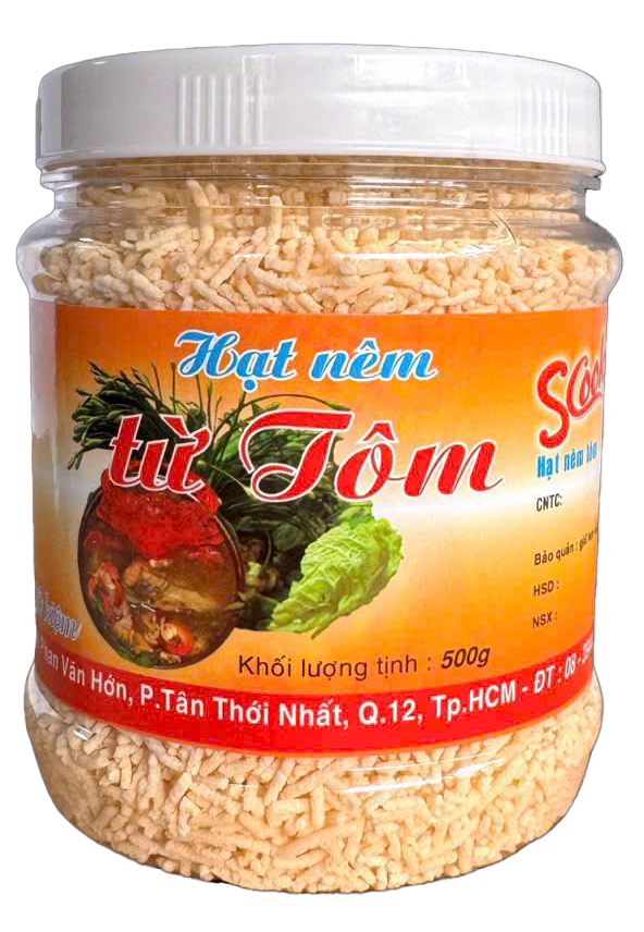 Hạt nêm từ tôm SCook được làm từ bột tôm. Chỉ cần cho 1 – 2 muỗng cà phê vào